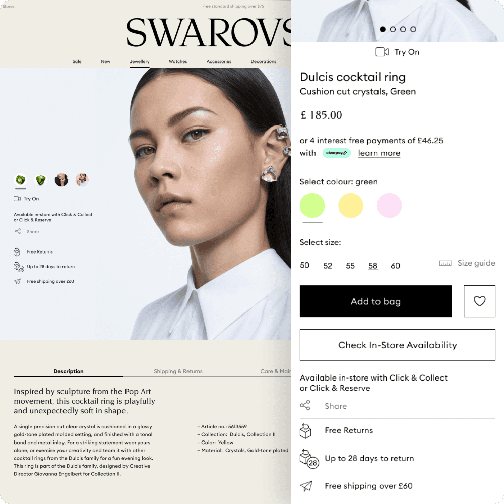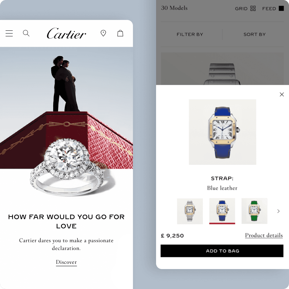 As opposed to mass-market ecommerce, luxury brands want to maintain brand exclusivity, and invoke the feeling of rarity when purchasing select products. We designed a shopping experience to reflect this; ease of use in select parts of the customer journey while maintaining exclusivity elsewhere to uphold a prestigious reputation, and requiring customers to invest effort when acquiring their products.